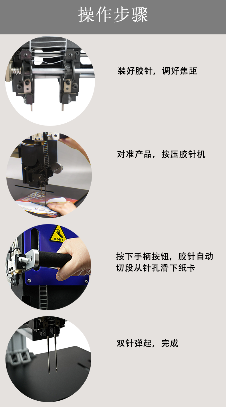 l 彈性膠釘的機針可與多種背卡材料配合使用,其設計更貼合產品,也更富有變化,有利于提升品牌形象,更重要的是令品牌和產品脫穎而出。